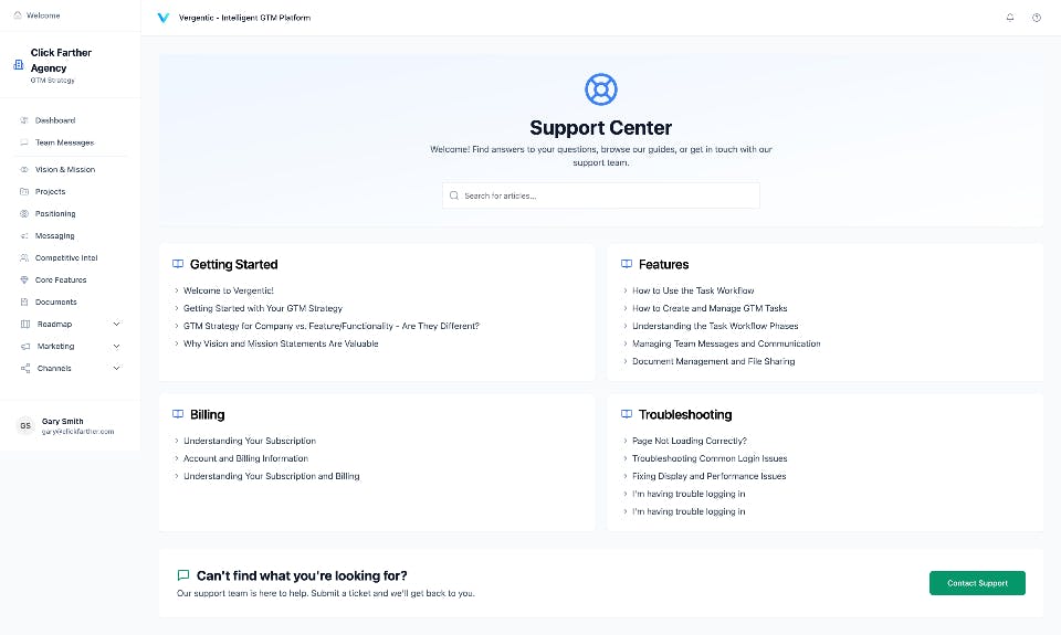 The VergenticAI platform offers several support and documentation features that will help you maximize the benefits of its numerous features, AI insights, and integration layers. Here are just a few of them: